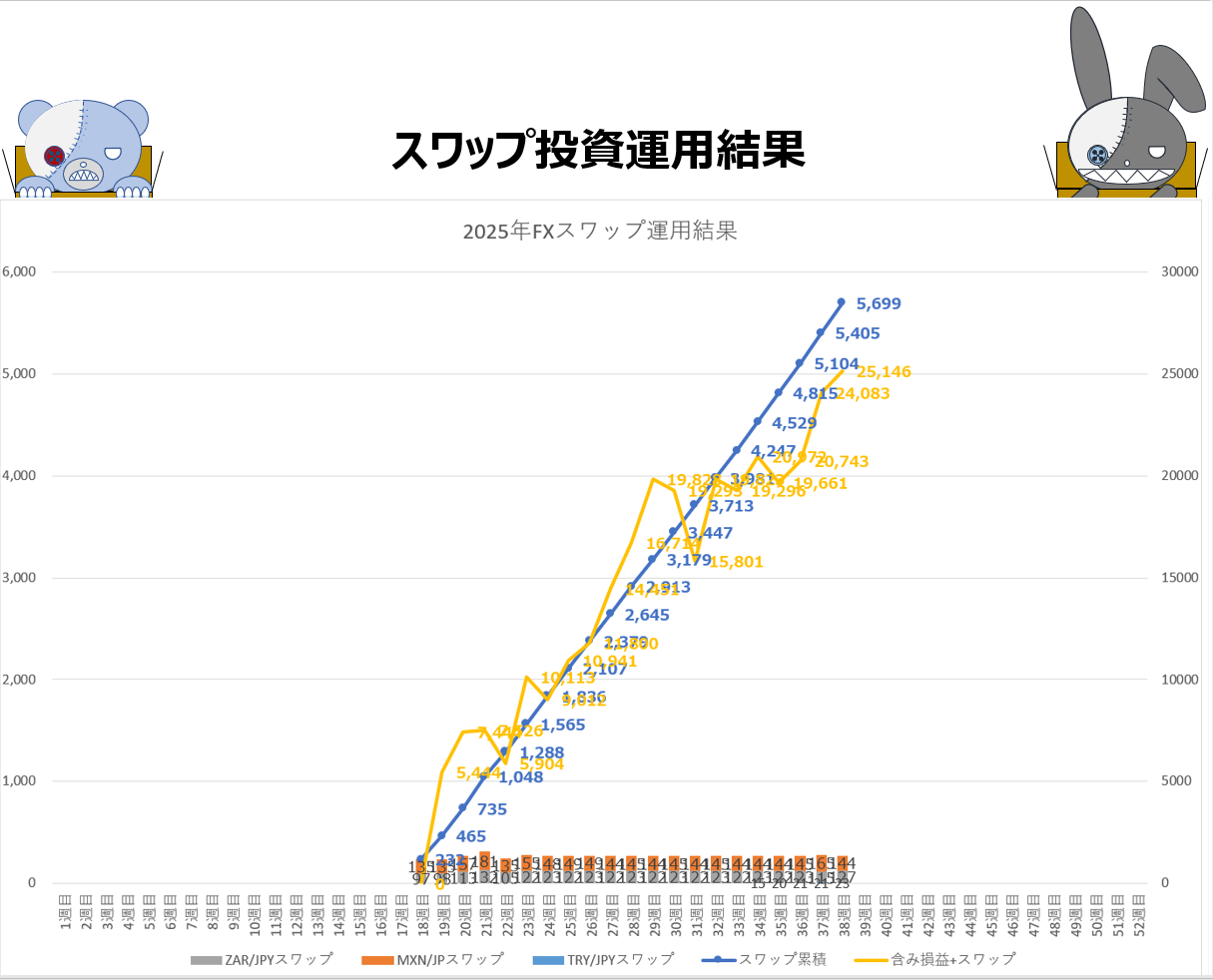 スワップ投資 不労所得 25年9月14日週+294円でした