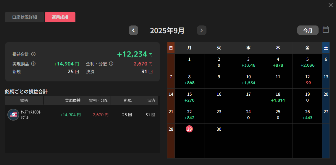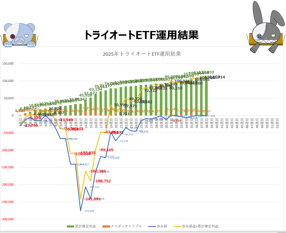 トライオートETFで自動売買25年9月21日週の不労所得+1,285円