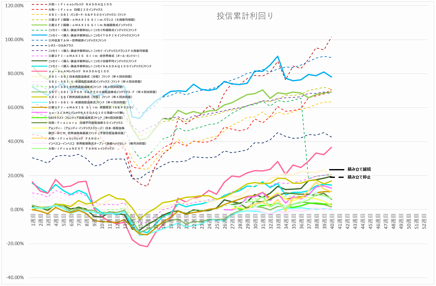 今回一部利益確定して、それを元本として再投資したため利回りが下がっていますが、それでも累計40%超えているので順調です。