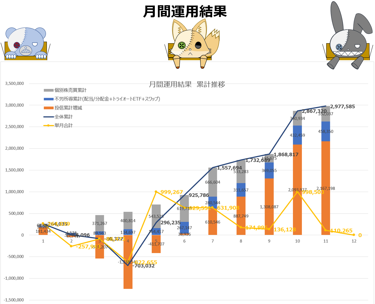 11月利益としては不労所得②+④+⑤=+25,891円です
