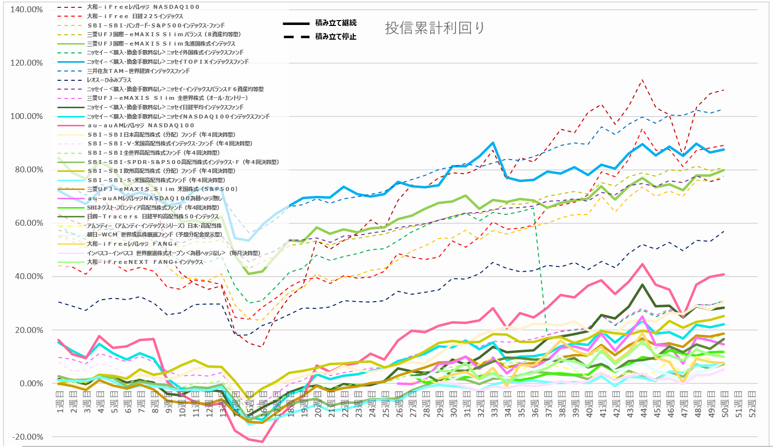 現状は過去の自分自身の実体験からくる運用成績や、信託報酬等から見直しをして似たようなモノは重複しないようにしています