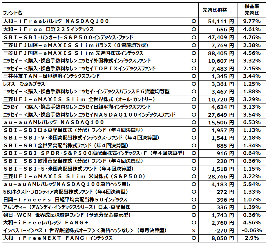 先週の爆下げから爆上げ。先週と今週の合算だとプラスになってくれています。今月もこの調子なら何とかプラスで終われそう