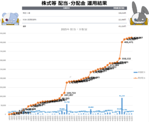 2025年末時点で、総投資元本額は950万円超えで含み益も約50%と、投資元本に対して1.5倍の資産規模まで成長しました。先週比ではわずかにマイナスとなりましたが、国内株式市場も二日しか稼働していなかったので変動は小さめです