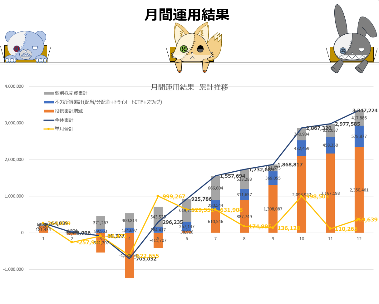 12月利益としては不労所得②+④+⑤=+120,527円です