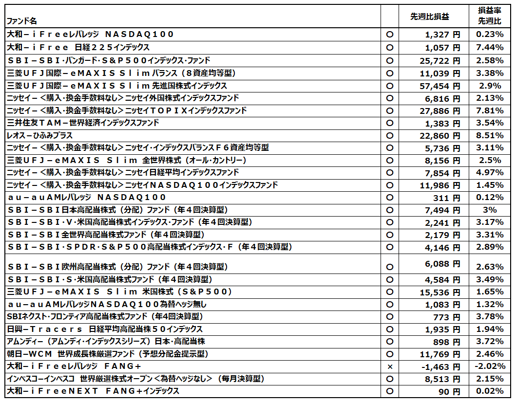 保有ファンド成績先週比