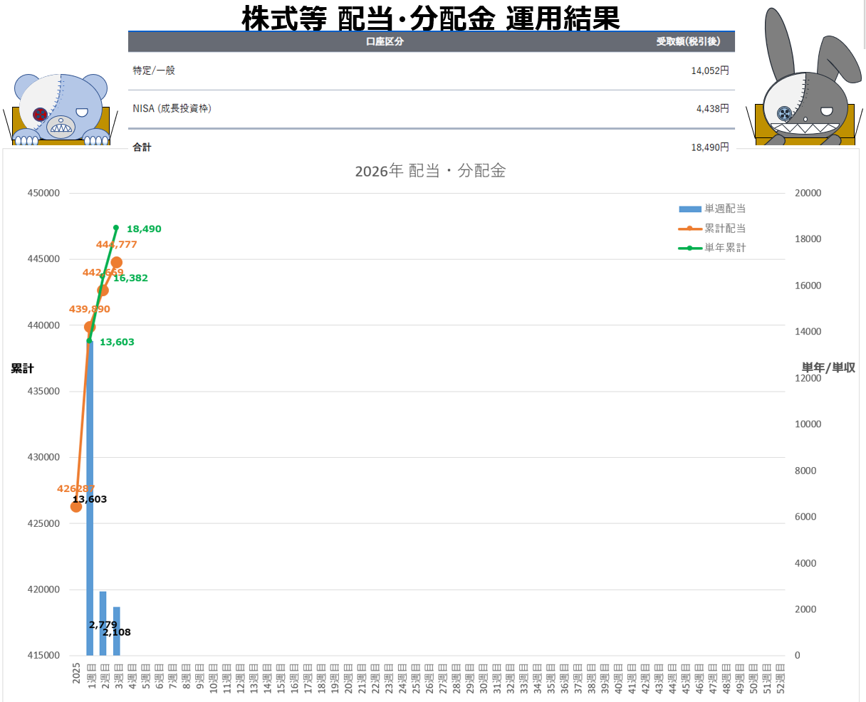 高配当 不労所得 配当&分配金結果 26年1月18日週 +0.2万円でした