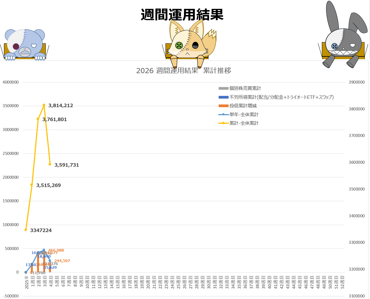 26年1月25日週 週間運用結果は-22.2万円でした