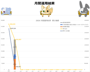 先週に引き続き、今週も-14.2万円とマイナス着地となりました。含み益率は47.26%まで後退。年初のロケットスタートから一転、2週連続の調整局面です。決算発表や重要イベントが重なり、相場のボラティリティが高まった結果、少し揺さぶられた形ですね。米国ハイテクのGAFAMが決算でAI投資額が大きすぎて、行き過ぎなんじゃないか?というリスクを予感させる結果で株価が下がっているようです。