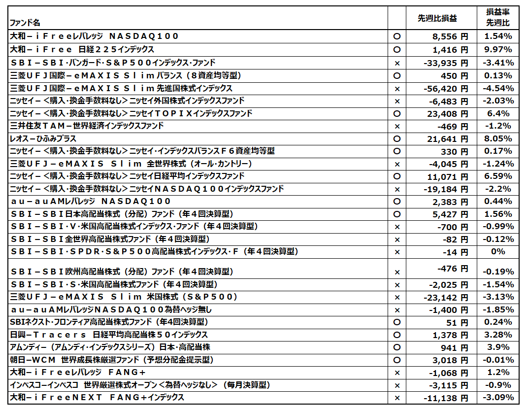 保有ファンド成績先週比