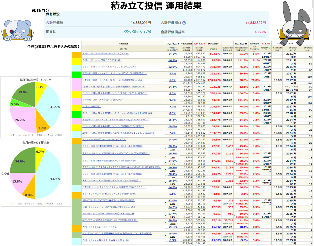 積み立て投信 運用結果 26年2月15日週 週間運用結果は+23.4万円でした
